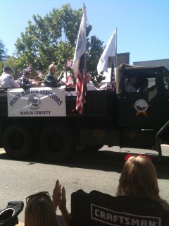 The parade itself was not bad, or I have lowered my expectation, which is likely the case. There were marching bagpipers, lots of army & Marine Corps vehicles; the Coast Guard was well represented. The Boy Scouts, the Girls Scouts, and of course my favorite the veterans. A few less than last year as the WW2 Veterans and Korean conflict veterans are moving on to greener pastures.